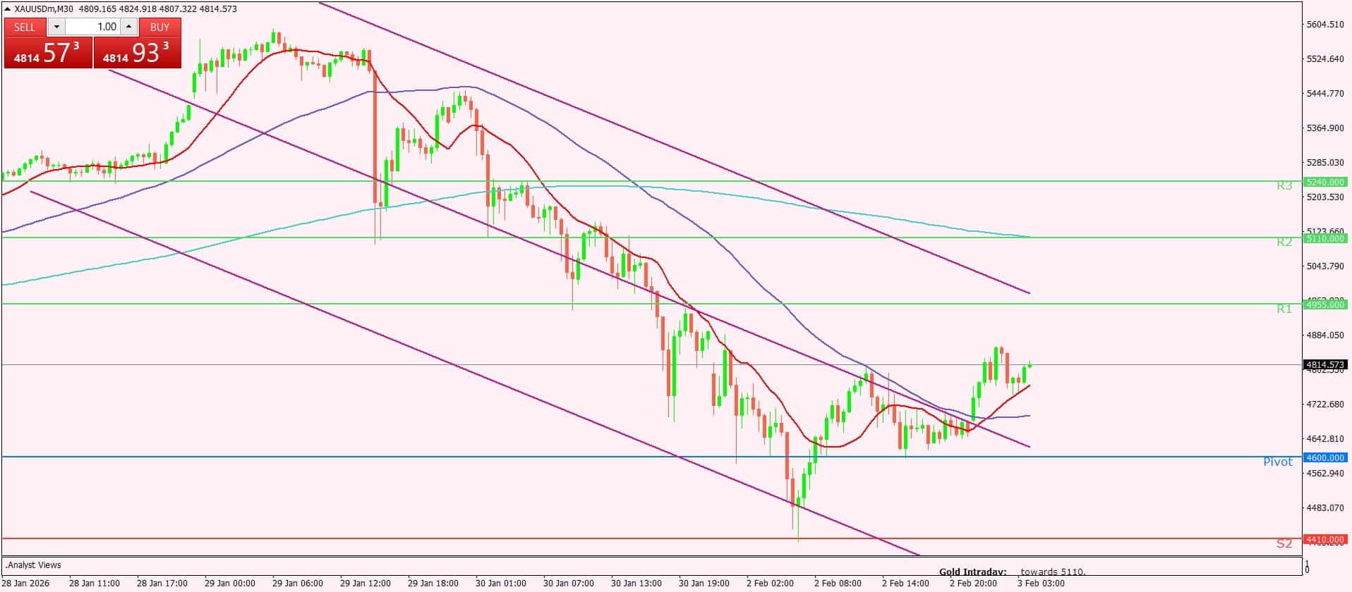 🔹 نقطة الارتكاز (Pivot): 4600