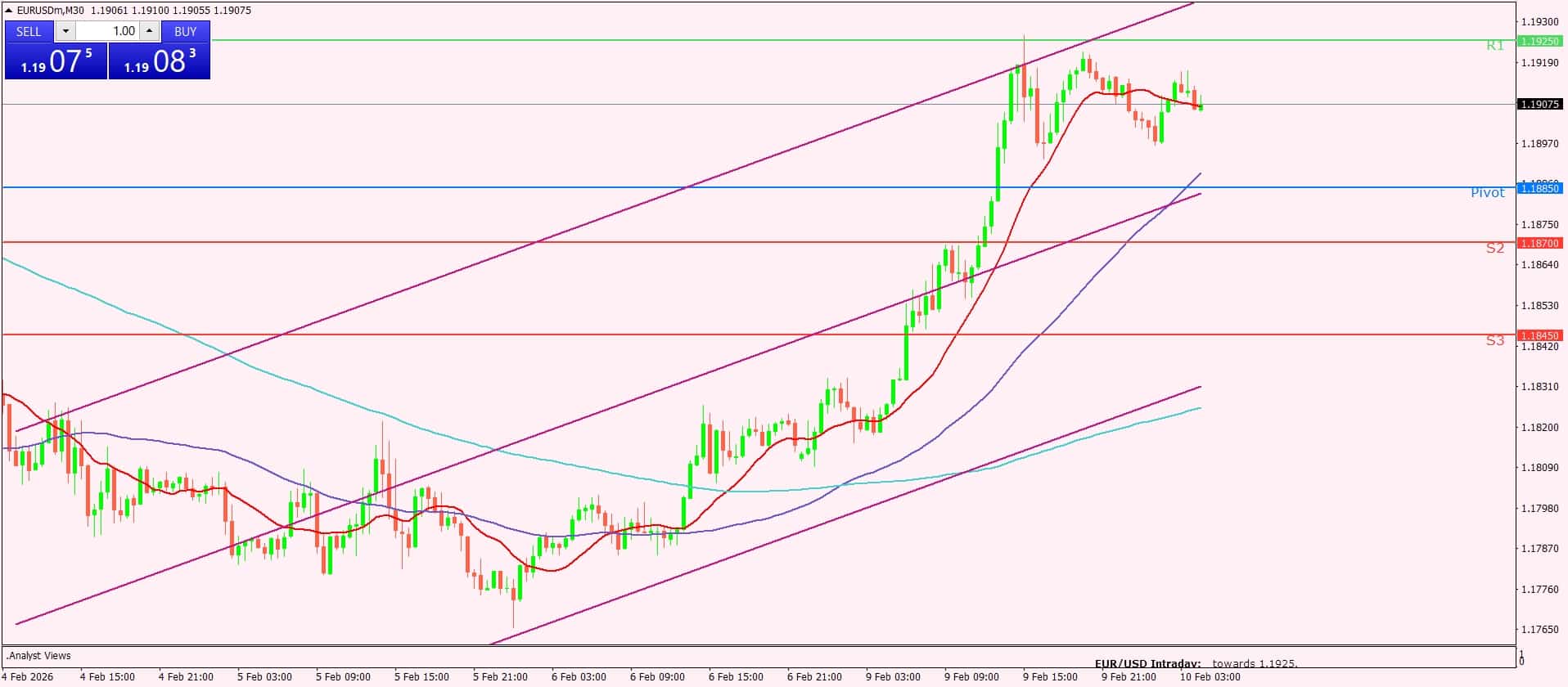 في حال الهبوط دون مستوى 1.1885، يُتوقع مزيد من التراجع مع استهداف مستويات 1.1870 ثم 1.1845.