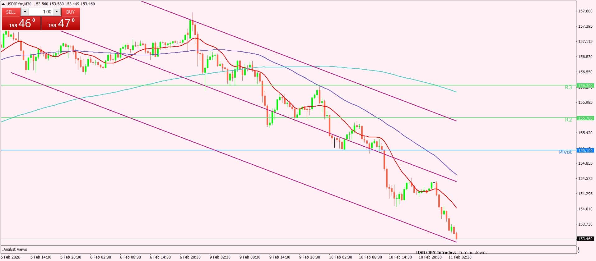 فتح مراكز بيع دون مستوى 155.10، مع استهداف 153.20 كهدف أول و152.70 كهدف ممتد في حال استمرار الزخم السلبي.