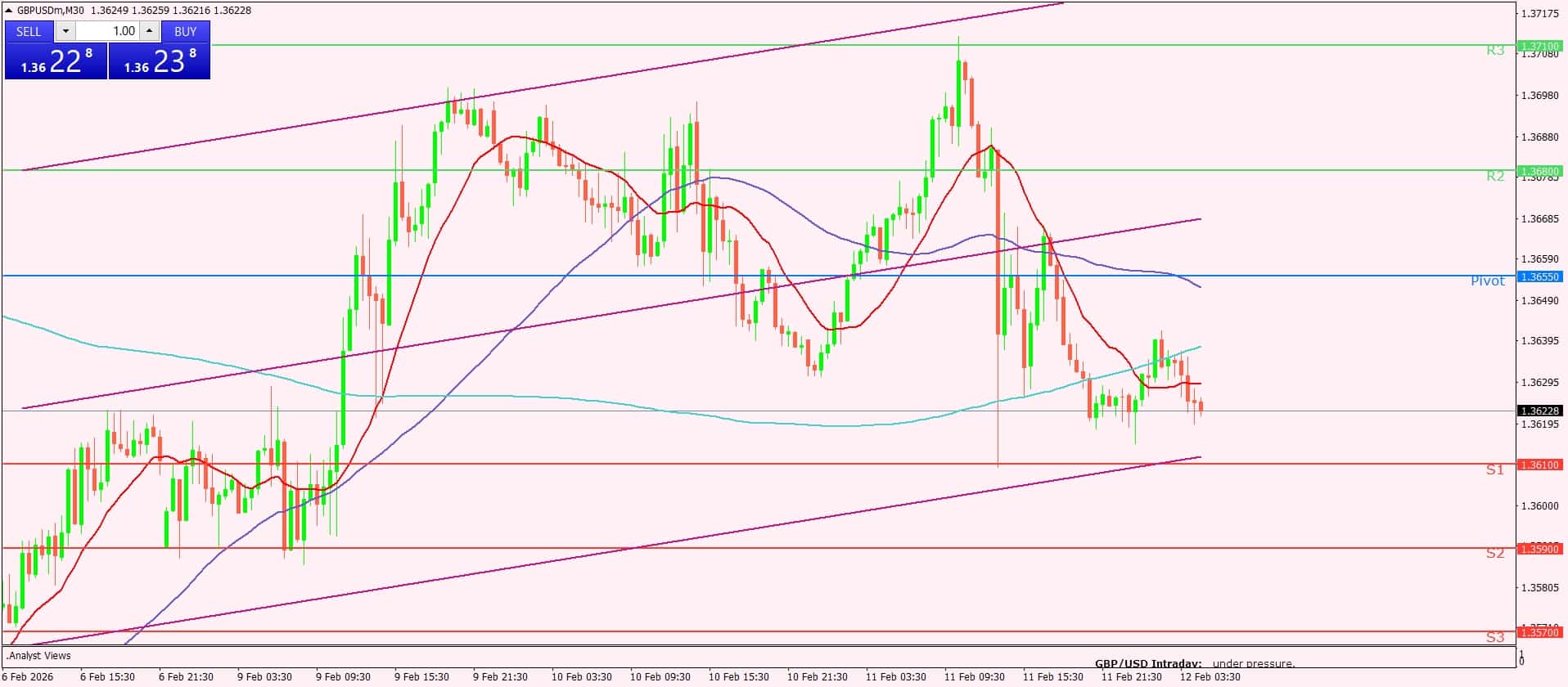 الإسترليني /دولار أمريكي:يتعرض لضغوط بيعية مستمرة.