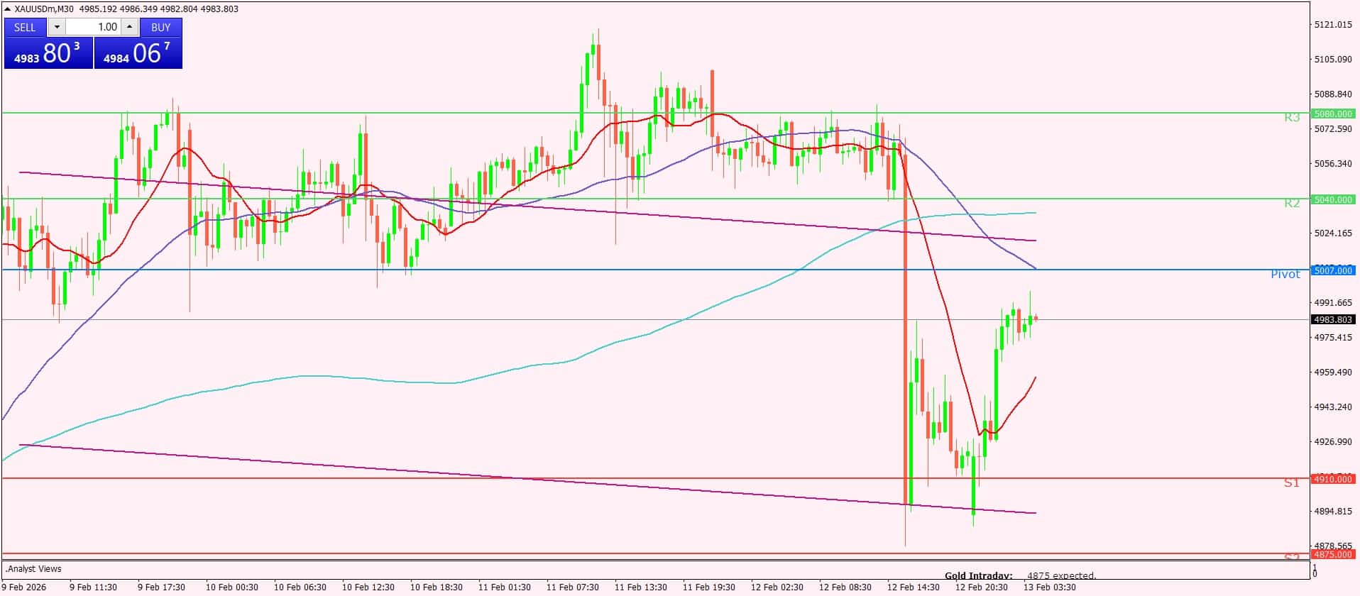 الذهب:مستوى 4875 يظل هدفًا متوقعًا في ظل الضغوط البيعية.