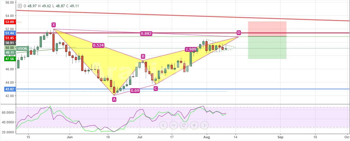 حافظت أسعار النفط على مكاسبها بعد صدور التقرير الأسبوعي لإدارة معلومات الطاقة الأمريكية، والذي أظهر أن الإمدادات المحلية قد تراجعت بأكثر من المتوقع الأسبوع الماضي. علي الفريم اليوم, السعر اقترب من منطقة الانعكاس المتوقعة لنموذج الهارمونيك BAT حول المستوي 50 دولار و88 سنت. فرصة للبيع في حال ظهور اشارة هبوط واضحة علي فريمات الانتراداي.