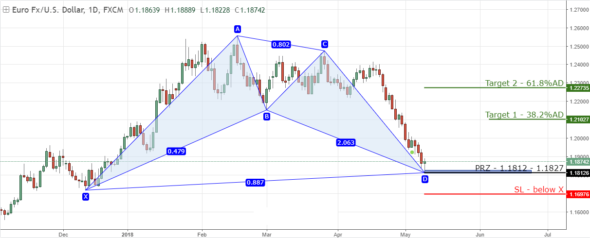 تعرضت العملة الموحدة للضغط في الجلسات الأخيرة بعد صدور دفعة ضعيفة من البيانات الاقتصادية التي غذّت التكهنات بأن البنك المركزي الأوروبي قد لا يتمكن من إنهاء برنامج تحفيز شراء الأصول في سبتمبر، كما توقع بعض المستثمرين. فنيا علي فريم اليومي, السعر أنهي نموذج الهارمونيك الشرائي Bat. نتوقع الانعكاس من المستوي الحالي.