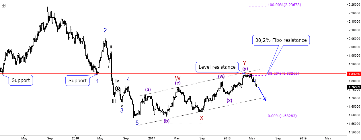 أظهرت بيانات يوم الأربعاء أن التضخم السنوي لأسعار المستهلكين في المملكة المتحدة تباطأ إلى 2.4 في المئة مسجلا أضعف زياة في أكثر من عام. حسب الترقيم الموجي الموضح علي الشارت, السعر أنهي موجة تصحيحية WXY تلت موجة دافعة هابطة 12345. ارتد السعر من مستوي الفايبوناتشي 38.2 للموجة الأخيرة الهابطة. نتوقع بالتاي الهبوط خلال الأسابيع القادمة.