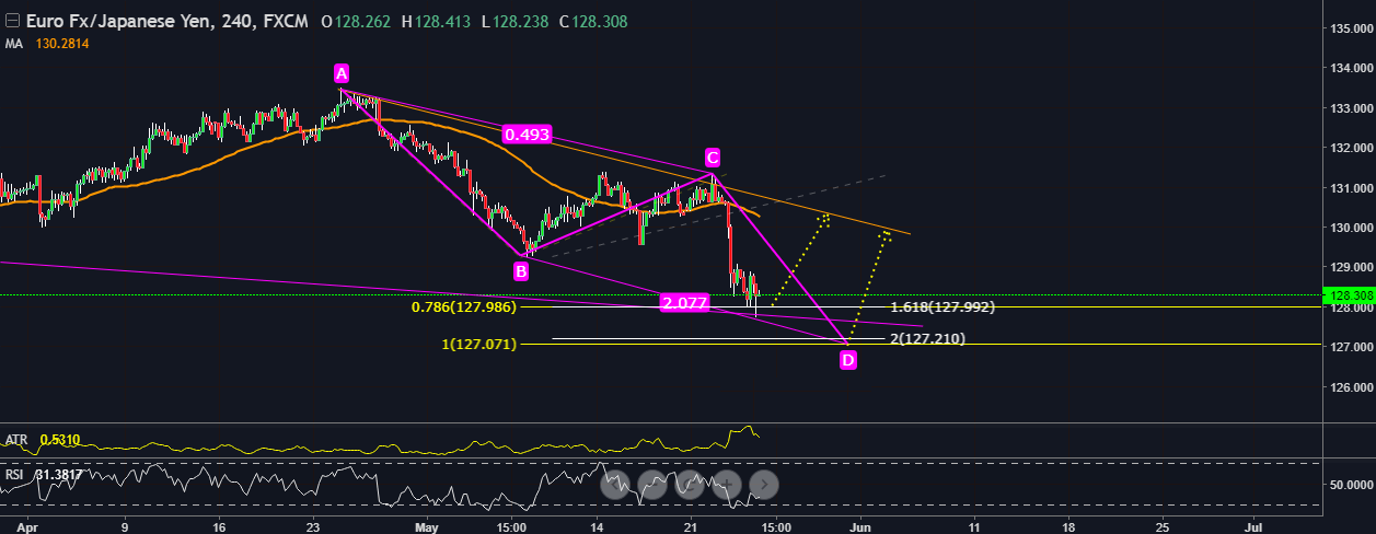 المضارب العربي / نموذج الهارمونيك ab=cd علي زوج EURJPY