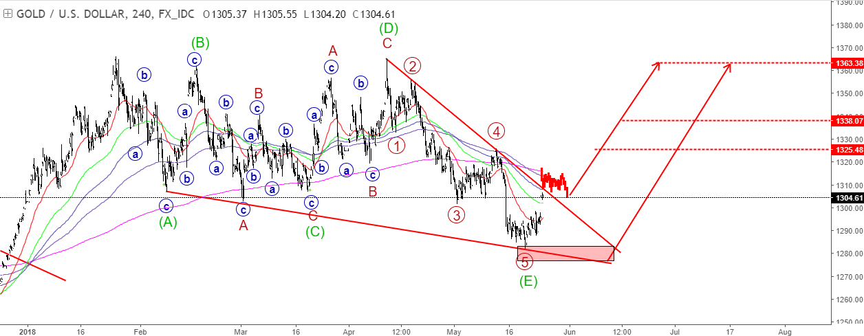 ارتفعت أسعار الذهب حيث استمر ضعف الدولار، والمخاوف التجارية الأمريكية – الصينية في دعم الطلب على الميدالية الثمينة كملاذ الملاذ الآمن. موجيا, السعر يتداول في اطار الموجة المثلثية المتباعدة et وهي عبارة علي موجة تصحيحية نتوقع استئناف الاتجاه الصاعد بعدها.