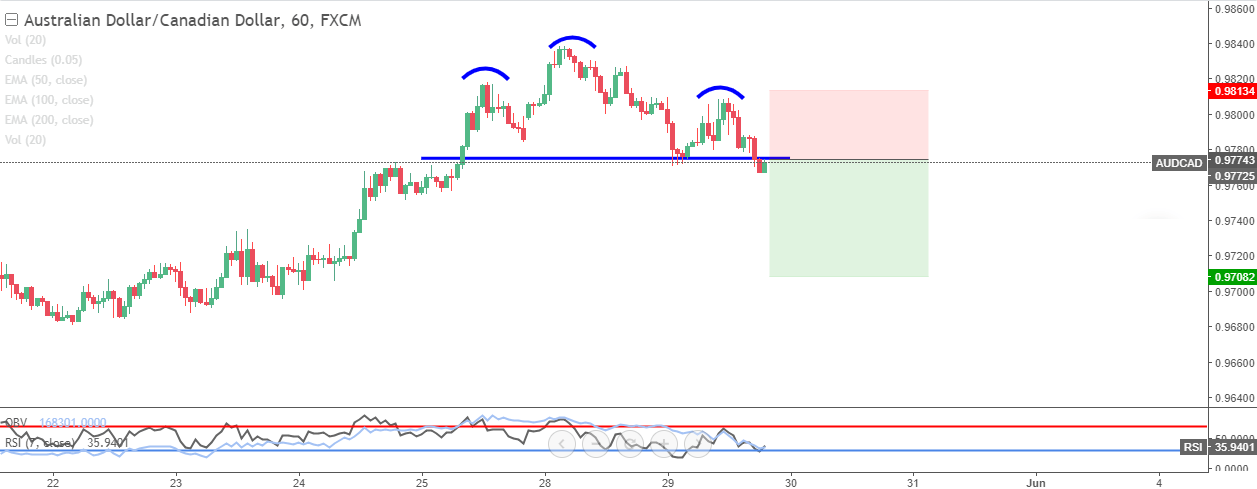 نموذج الرأس والكتفين علي زوج AUDCAD