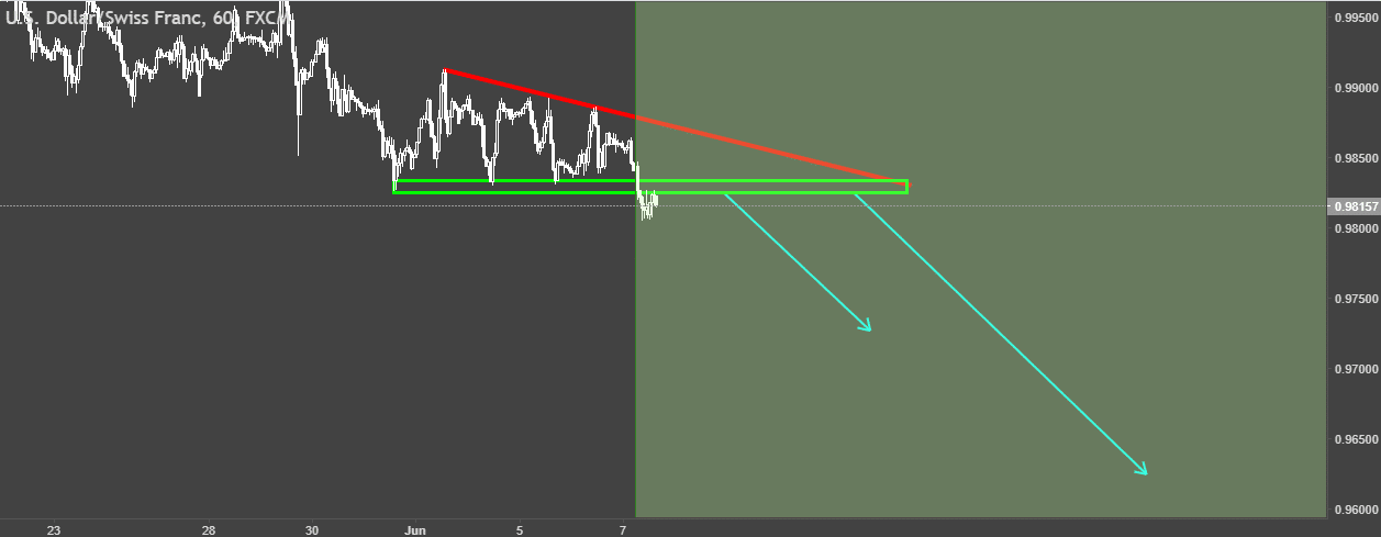 المضارب العربي / نموذج المثلث الهابط علي زوج USDCHF