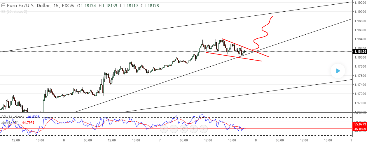 المضارب العربي / نموذج العلم الصاعد علي زوج EURUSD