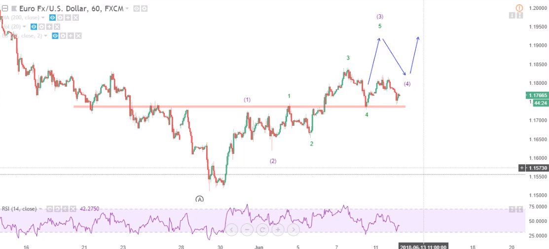 ارتفع اليورو رغم اشتداد المخاوف من نشوب حرب تجارية عالمية عقب خلاف بقمة مجموعة السبع في كندا بين الرئيس الأمريكي دونالد ترامب وقادة آخرين بشأن رسوم جمركية على السيارات ومسائل أخرى. وهاجم ترامب كندا وأوروبا بسبب العجز التجاري الأمريكي معهما بعدما وصل إلى سنغافورة، حيث من المقرر أن يعقد اجتماعا تاريخيا مع زعيم كوريا الشمالية كيم جونج أون يوم الثلاثاء. موجيا علي فريم الساعة, زوج اليورو دولار في موجة صاعدة خماسية. نتوقع استمرار الصعود كما هو موضح بالأسهم علي الشارت.