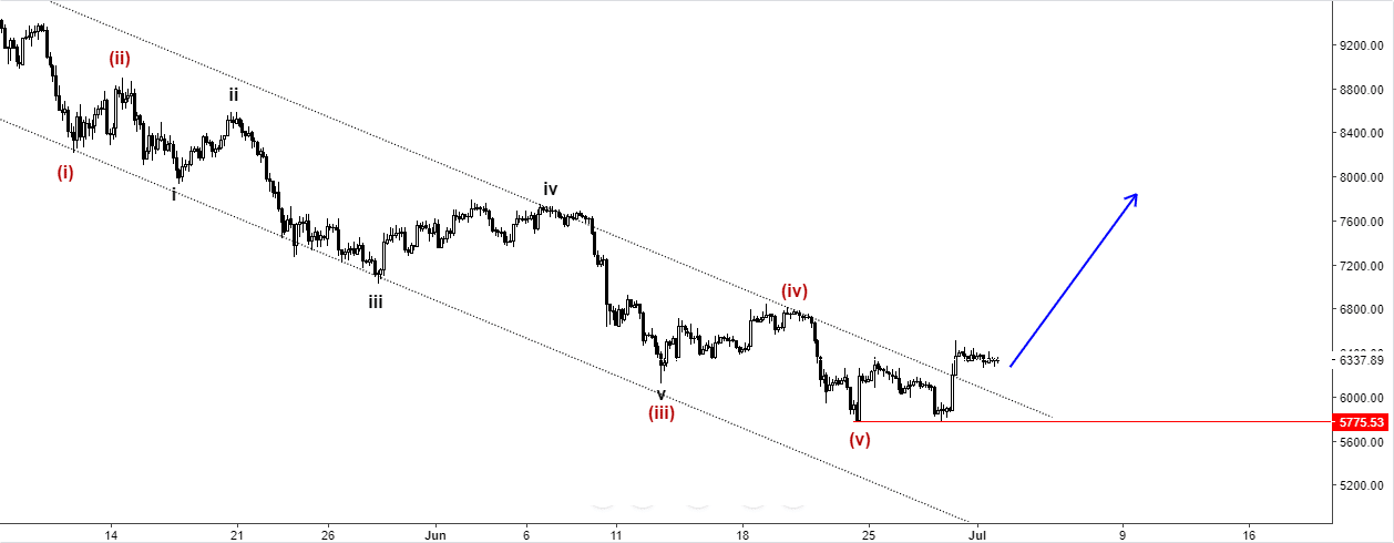 بعد التداولات الإيجابية التي شهدتها العملات الإفتراضية آخر الأسبوع، عادت بتكوين لتنخفض بشكل طفيف لتتحرك بالقرب من الستة آلاف وثلاثمئة دولار. موجيا علي فريم الاربع ساعات السعر أنهي موجة دافعة هابطة بالتالي نتوقع الصعود في موجة صاعد تصحيحية. ما يدعم الصعود الحركة التصحيحية الأخيرة وتكوين نموذج العلم الصاعد.