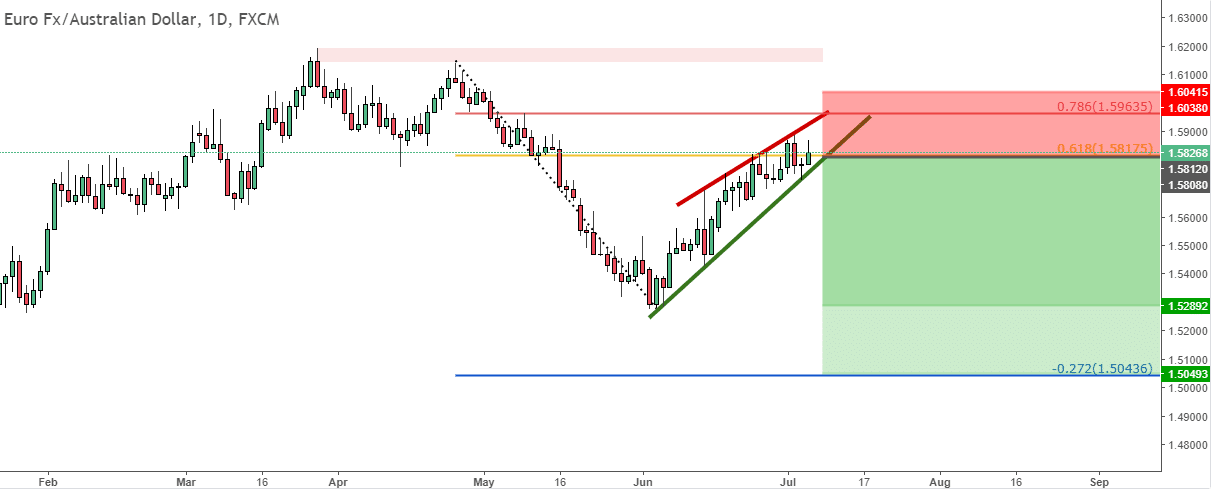 بدعم من بيانات قوية عن الطلبيات الصناعية الألمانية وآمال بشأن تراجع حدة النبرة الأمريكية تجاه شركات صناعة السيارات في الاتحاد الأوروبي ارتفع اليورو أمام نظيره الاسترالي. علي فريم اليومي السعر في موجة تصحيحية صاعدة داخل نموذج الوتد الصاعد. فرصة للبيع نقترحها مع كسر النموذج لأسفل.