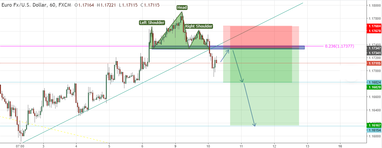 المضارب العربي / نموذج الرأس والكتفين علي زوج EURUSD