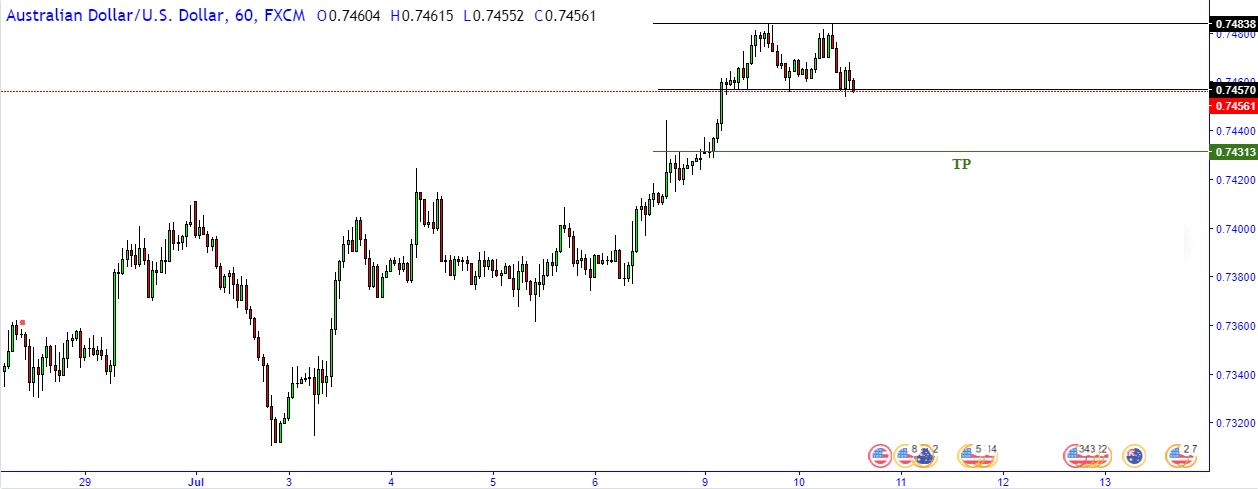 تأثرت العملة الأمريكية سلبا ببيانات يوم الجمعة التي أظهرت أن نمو الأجور في الولايات المتحدة ظل فاترا على الرغم من تحسن أوضاع سوق العمل عموما. زوج الاسترالي دولار قام بتكوين نموذج القمة المزدوجة. نتوقع الهبوط ونقترح البيع بتايك بورفيت موضح علي الشارت.