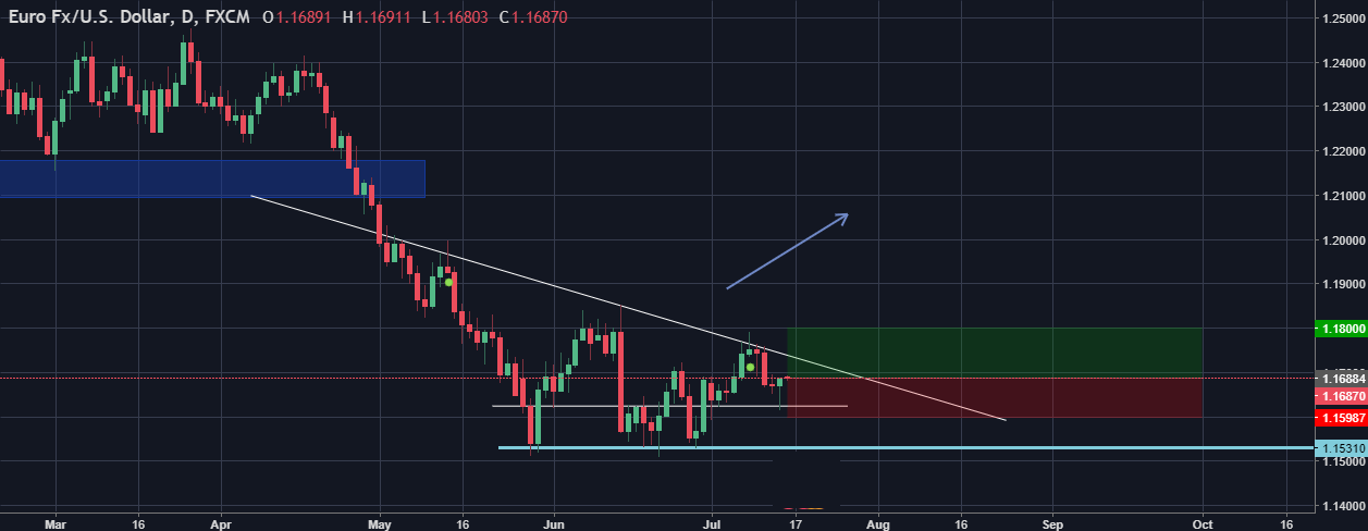 ارتفع اليورو مقابل الدولار في أواخر التعاملات يوم الحمعة من أدنى مستوى له في أسبوعين حيث في الاسبوع خسر اليورو 0.52٪ مقابل الدولار. فنيا السعر قام بتكوين نموذج المثلث الهابط. كلا الاحتمالين واردين, اما الاختراق لأعلي أو الكسر ومواصلة الهبوط. نرجح الاختراق اكثر.