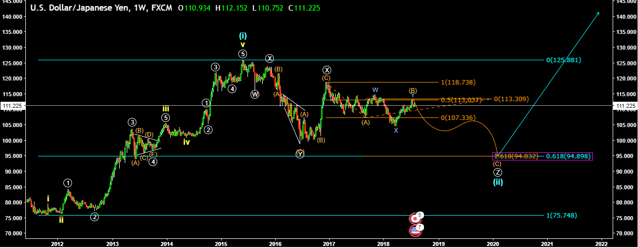 انخفض الدولار مقابل الين يوم الجمعة، مع تراجع تداول الدولار مقابل الين بنسبة 0.33٪ ليصل إلى 111.27 بعد أن اقترحت الصين رسومًا انتقائية على واردات الولايات المتحدة بقيمة 60 مليار دولار، مما أدى إلى تصاعد نزاع تجاري بين أكبر اقتصادين في العالم، والذي يخشى المستثمرون من أن يكون بمثابة عامل هبوطي للنمو العالمي. موجيا علي الفريم الاسبوعي السعر في موجة تصحيحية ثانية نتوقع استمرارها خلال الفترة القادمة كما هو موضح علي الشارت.