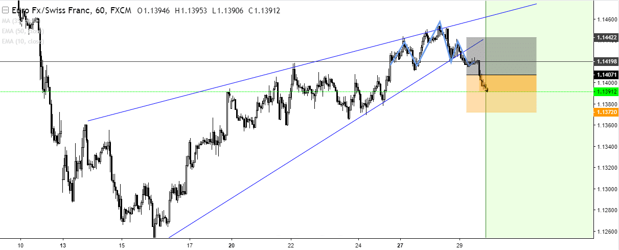 المضارب العربي / نموذج الوتد الصاعد علي زوج EURCHF