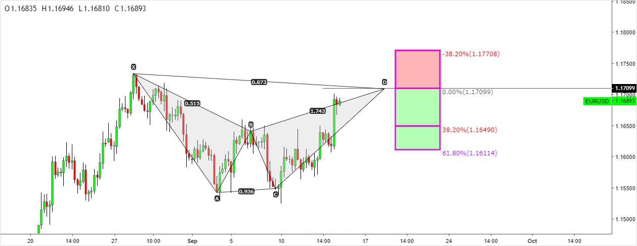 المضارب العربي / نموذج الهارمونيك Bat علي زوج EURUSD
