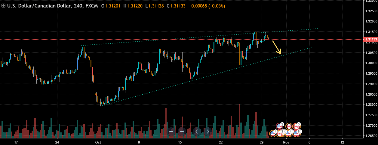 المضارب العربي / نموذج الوتد الصاعد علي زوج USDCAD