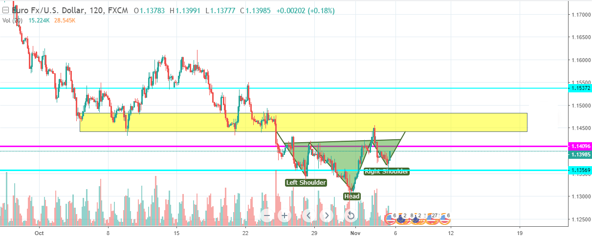 نموذج الرأس والكتفين المعكوس علي زوج EURUSD