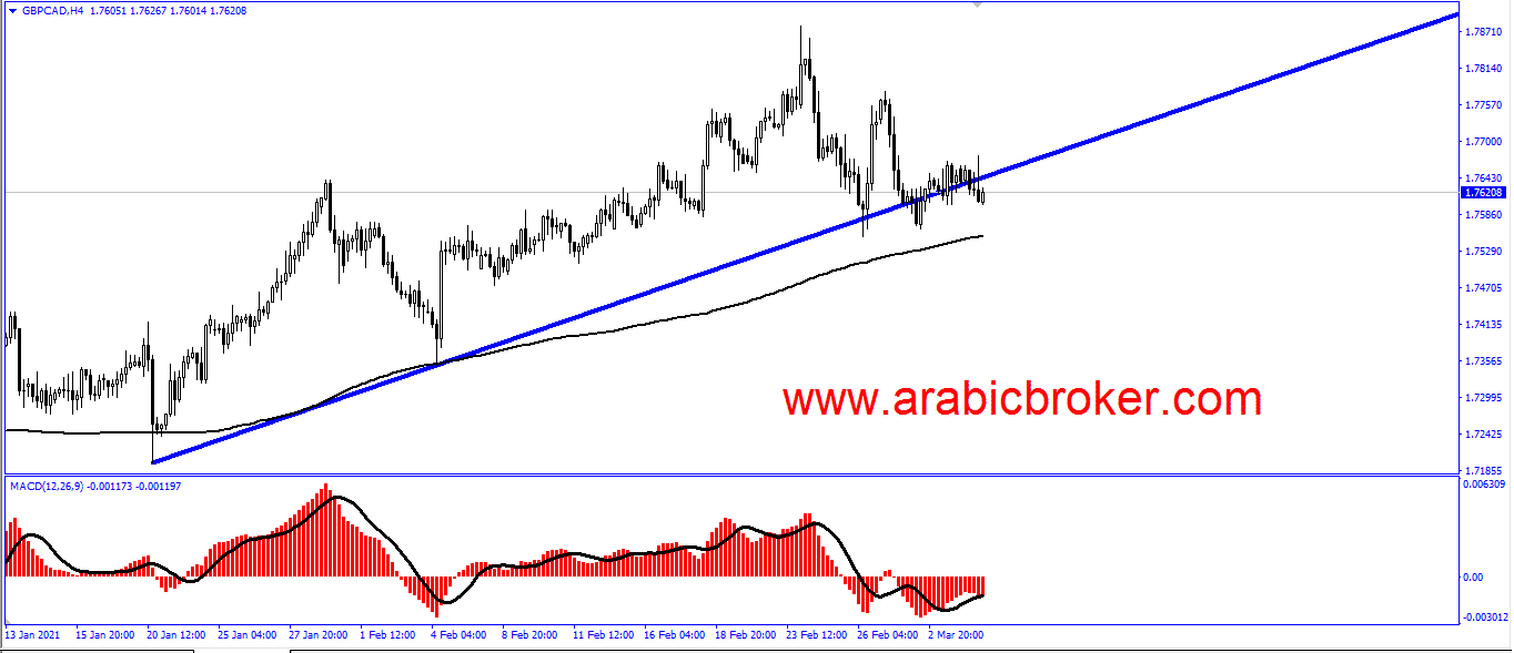المضارب العربى/ ارتدت تداولات زوج الجنيه الإسترليني مقابل الكندى هبوطاً بشكل ملحوظ بعد اختبار مستوى الدعم اليومى 1.7620 يوم أمس،