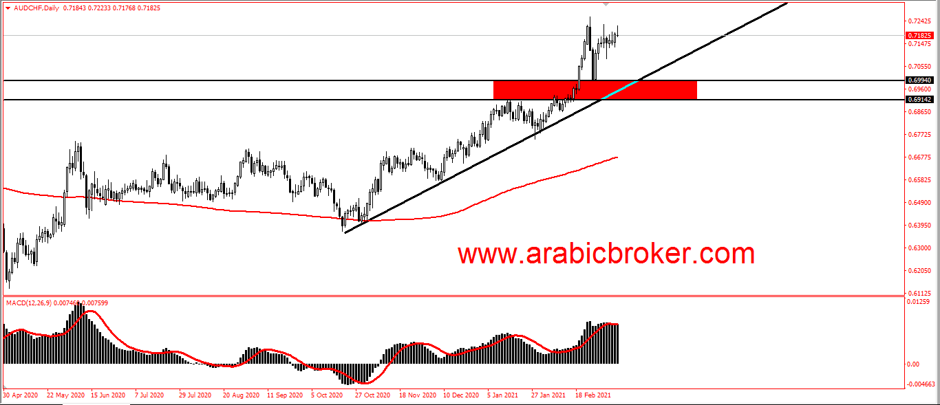 المضارب العربى / يتداول زوج الدولار الأسترالي مقابل الفرنك بإيجابية ملحوظة ليتخطى مستوى المقاومه الهام بعد وصول الاسعار مره اخرى اليه لاعاده الاختبار عند سعر 0.6995 و الثبات فوقه،