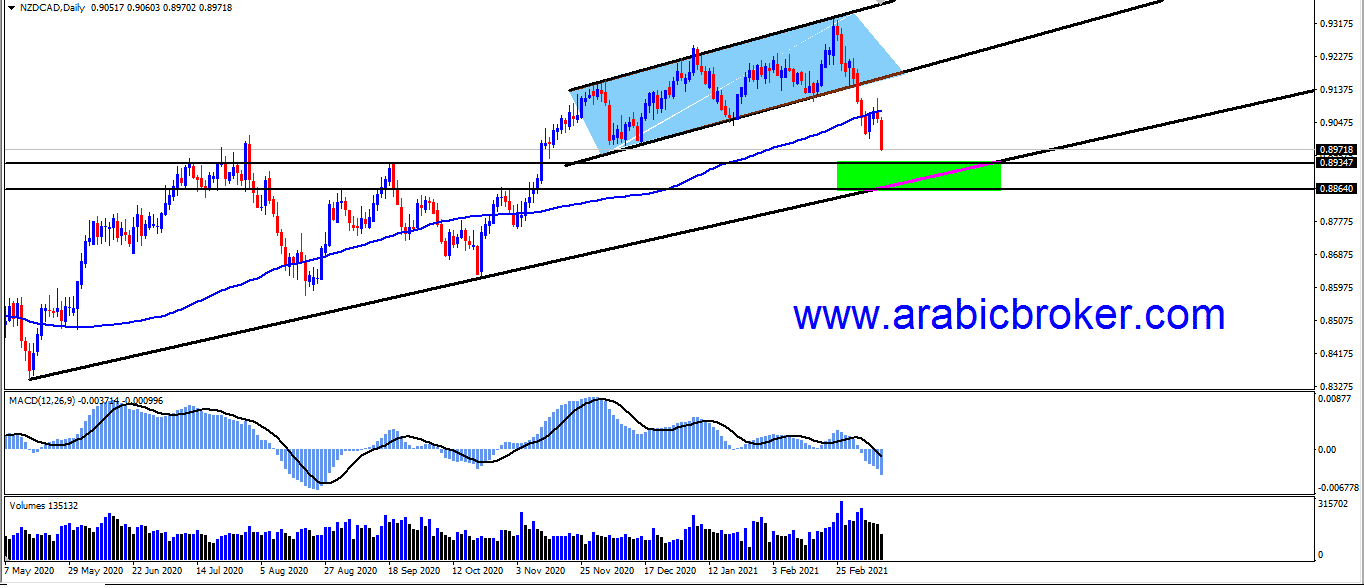 المضارب العربى / يظهر زوج النيوزلندي مقابل الكندى بتداولات سلبية نتج عنها كسر القناه السعريه الصاعده على الشارت المرفق اعلاه