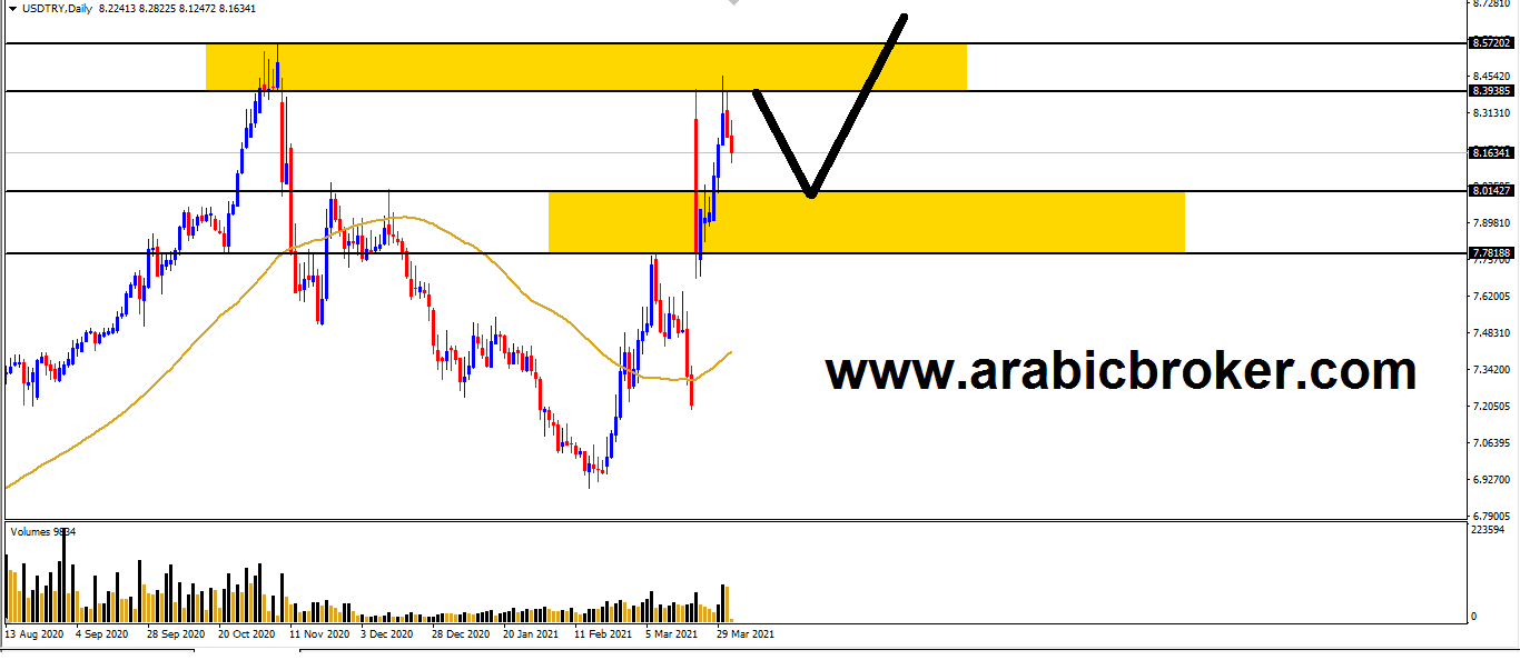 المضارب العربى / يظهر زوج الدولار مقابل التركى حركه عرضيه الان بين مستوى دعم يومى ومقاومه هامه عند سعر 8.3940 لكننا نفضل الانتظار لاختراق المقاومه بتداولات إيجابية جديدة ليعزز التوقعات بمواصلة الاتجاه الرئيسي الصاعد،