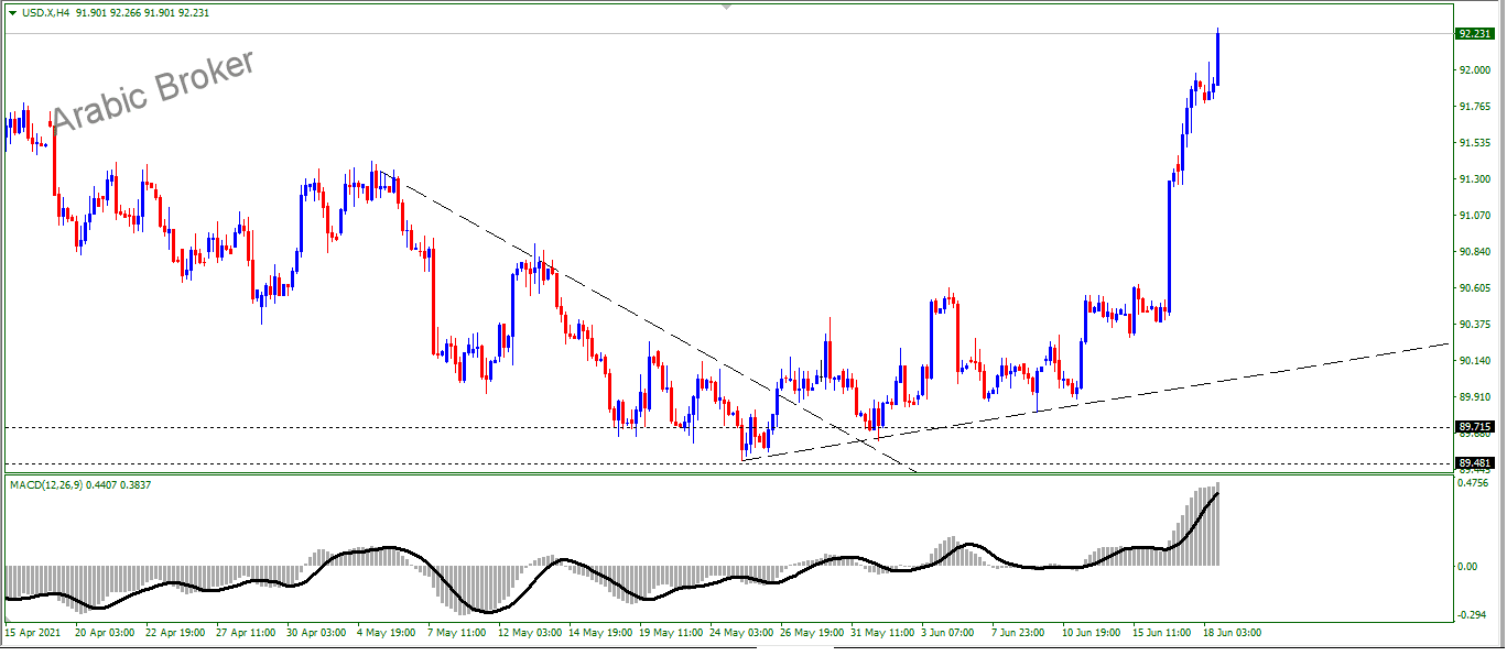 مؤشر الدولار ينطق بقوه نلاحظ الان تكون موجه صاعده عنيفه على مؤشر بتداولات يوم أمس اندفاع صاعد قوي ليضغط بذلك على الحاجز الإضافي والذي شكّل بدوره مؤخرا الهدف الأول بتمركزه قرب 92.00.