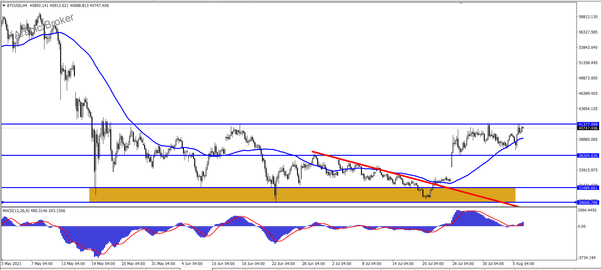 ولذلك نحن نتوقع ارتفاع البتكوين بتداولاته القادمة ، طيلة استقراره أعلى مستوى 38810 ، ليستهدف مستوى المقاومة41200 ثم مستوى 43120