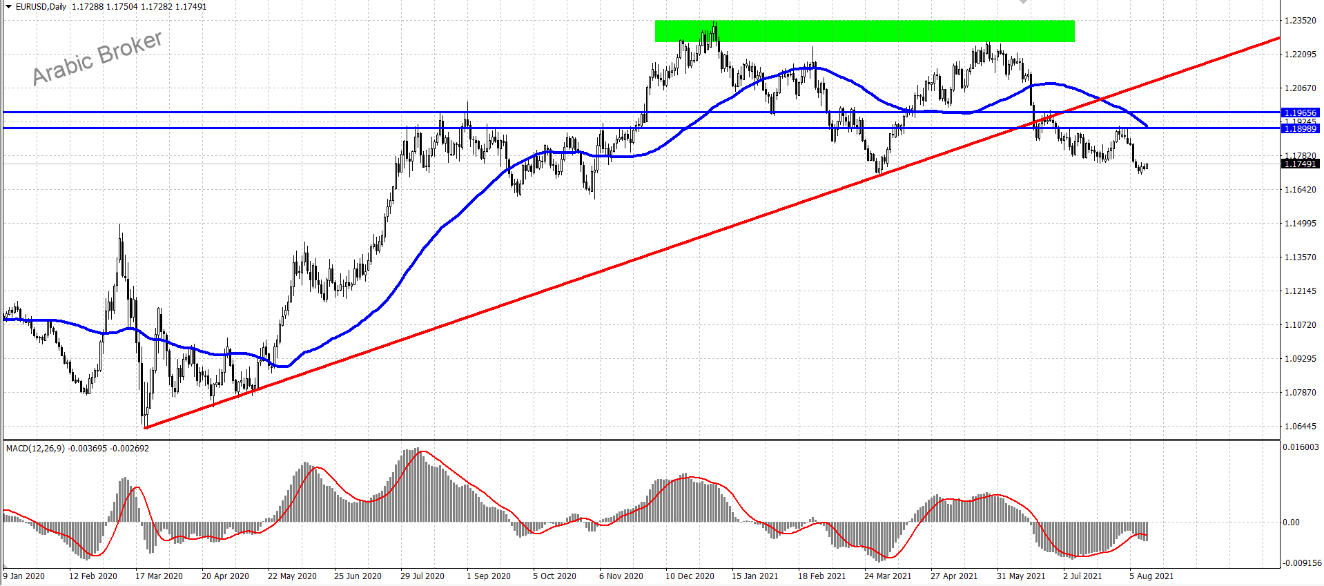 وان الثبات دون 1.1780 مهم لاستمرار الانخفاض المتوقع، حيث إن اختراقه سيقود السعر لبدء محاولات تعافي تستهدف زيارة مناطق 1.1850 مبدئياً.
