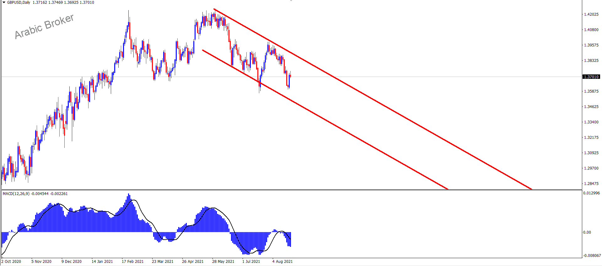 الإسترليني يخترق المقاومة  موجه هابطه تدا لعى ظهور بياع مصمم على خفض الاسعار من جديد ونلاحظ الان واصل زوج الجنيه الإسترليني مقابل الدولار الارتفاع يوم أمس ليخترق مستوى 1.3680 ويستقر فوقه،