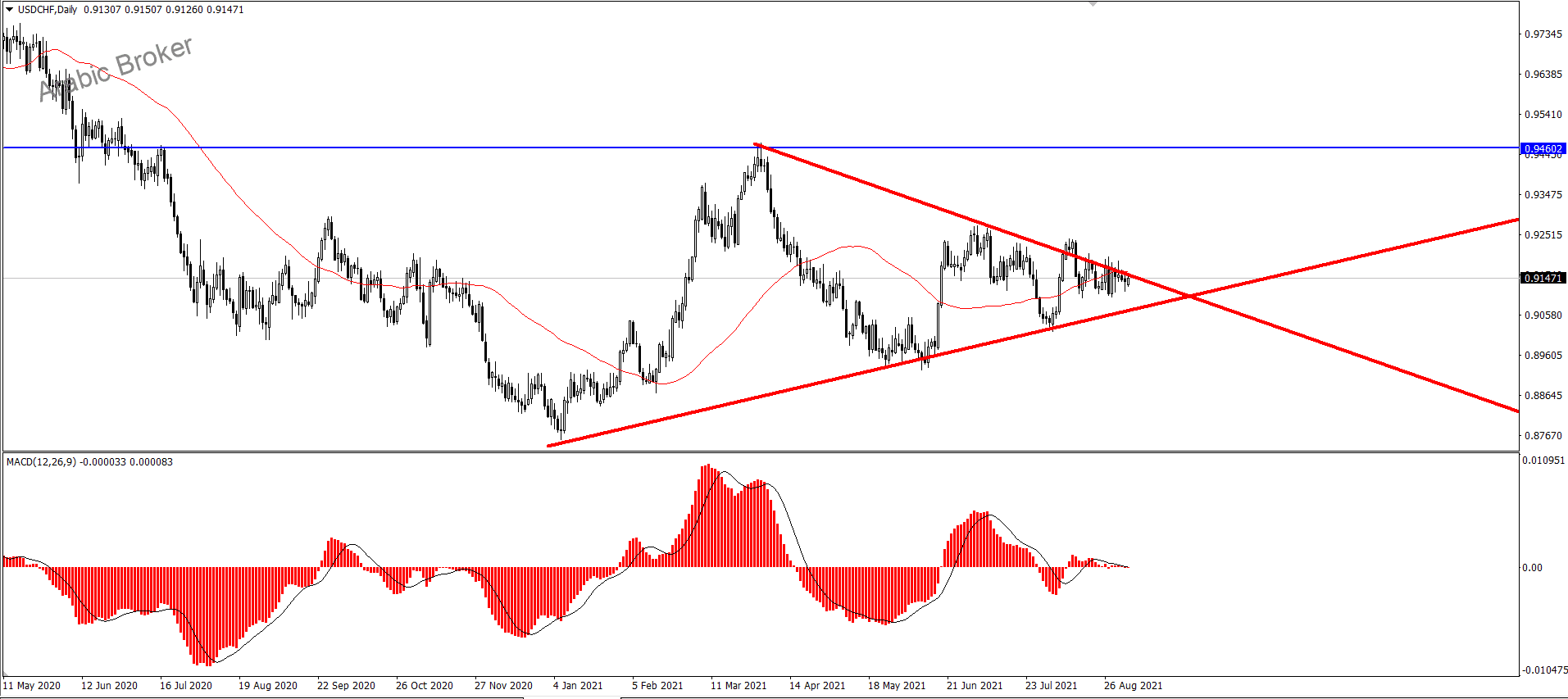 ونحن الان نشير إلى أن كسر الدعم المذكور سيضغط على السعر لتحقيق أهداف سلبية تبدأ عند 0.9060 وتمتد إلى 0.9000، بينما يمثّل اختراق المقاومة مفتاح الاندفاع لتحقيق ارتفاعات جديدة تبدأ عند 0.9265.