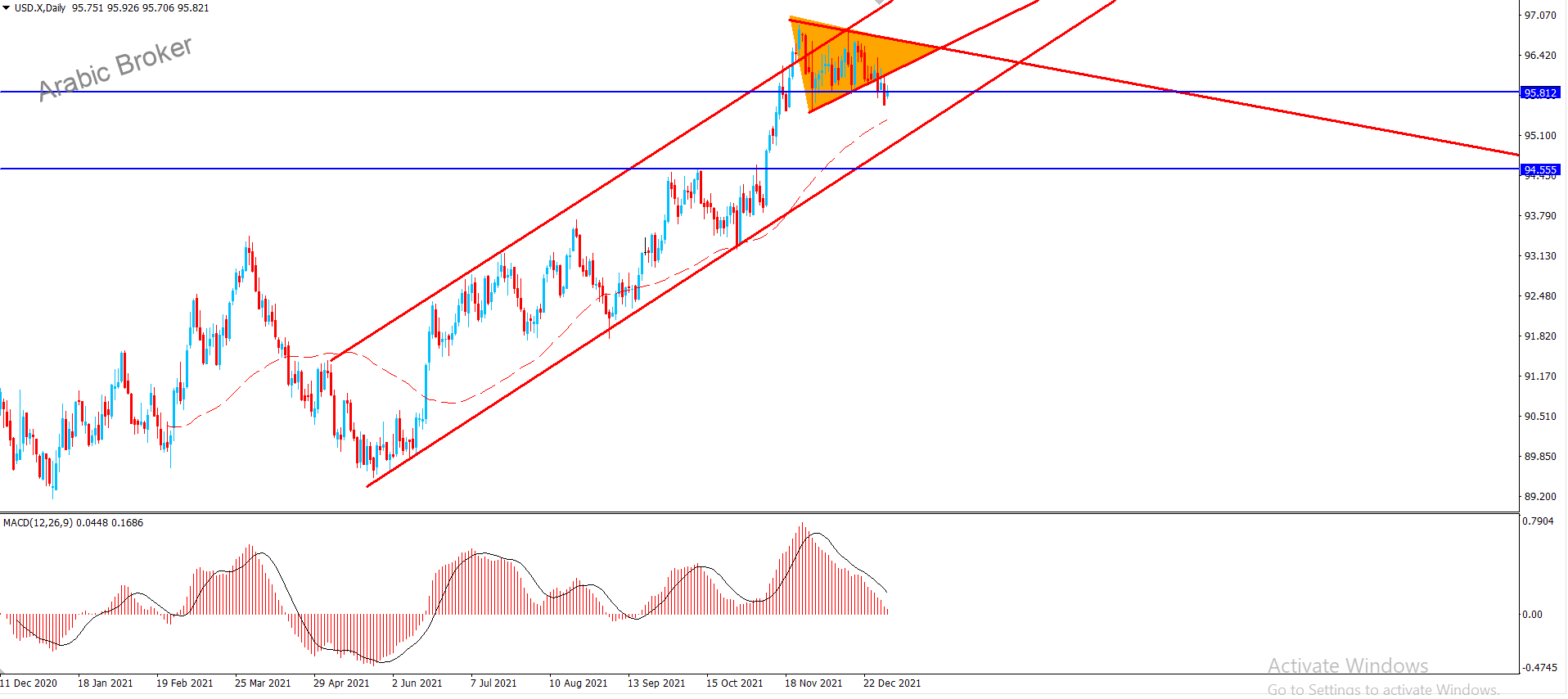 لذالك فنتوقع انحصار التداولات المتكونه معنا حاليا ما بين المحاور المذكورة سابقا ولنشير إلى أن محاولة تحقيقه لكسر الدعم الإضافي فإن ذلك سيجبره على استئناف الهبوط بهدف اختبار دعم القناة الصاعدة والممتد حاليا نحو 95.10 تقريبا.