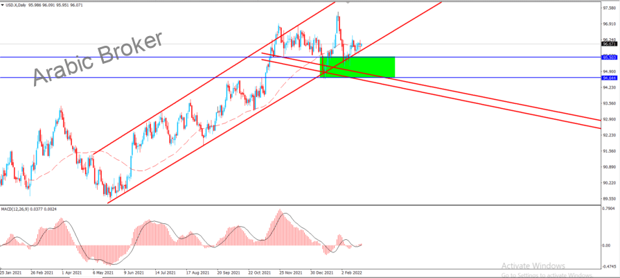 مؤشر الدولار واستمرار الاسعار داخل القناه صمود الاسعار بشكل واضح الان داخل نموبدأ سعر المؤشر باستقبال العزم الإيجابي نتيجة لاندفاع مؤشر الماكد فوق مستوى 50