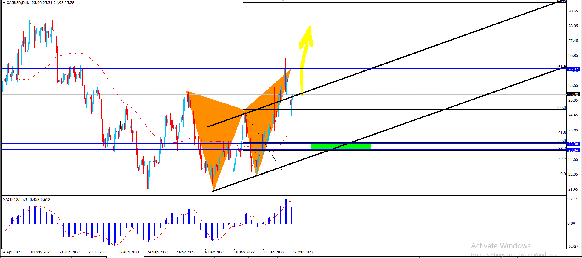 ولهذه الاسباب الوراده معنا سيكون الميل الصاعد الايجابى مرجحا لهذا اليوم ويحتاج السعر لتأكيد باغلاق واضح تجاوز المتوسط المتحرك 50 الذي يشكل مقاومة الآن عند 25.25 لتسهيل مهمة تحقيق الأهداف الإيجابية المنتظره مع الإشارة إلى أن الثبات فوق 25.05 مهم لاستمرار الارتفاع المتوقع.