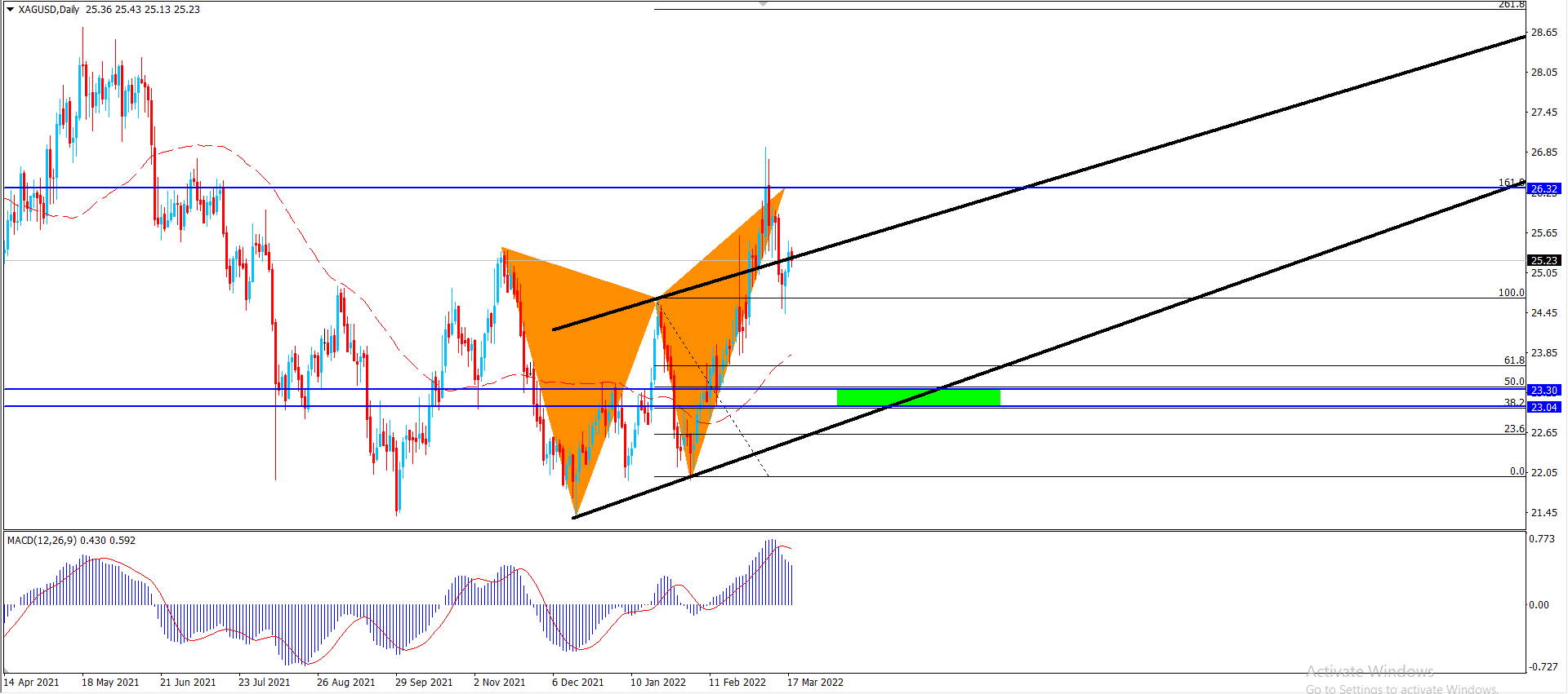 الفضه والسيناريو الاقرب المتوقع الان كنا نوهنا فى تقريرنا السابقه عن اهميه المستويات التى وصلت اليها معدن الفضه وكما نلاحظ الان تستقر تداولات سعر الفضة فوق مستوى هام وهوا مستوى 25.05،