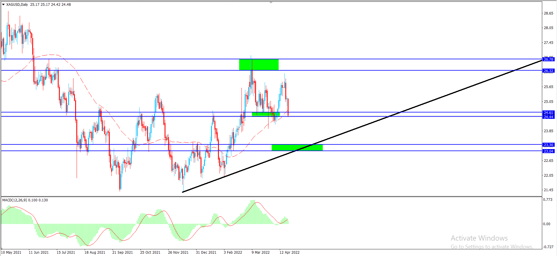 استمر معنا الفضه بسيناريو سلبى ممتد معنا ومقترب من مستوى الدعم وكما نلاحظ الان حقق سعر الفضة كسرا جديداً لمستوى 25.05 ويحاول الثبات اسفله الان،