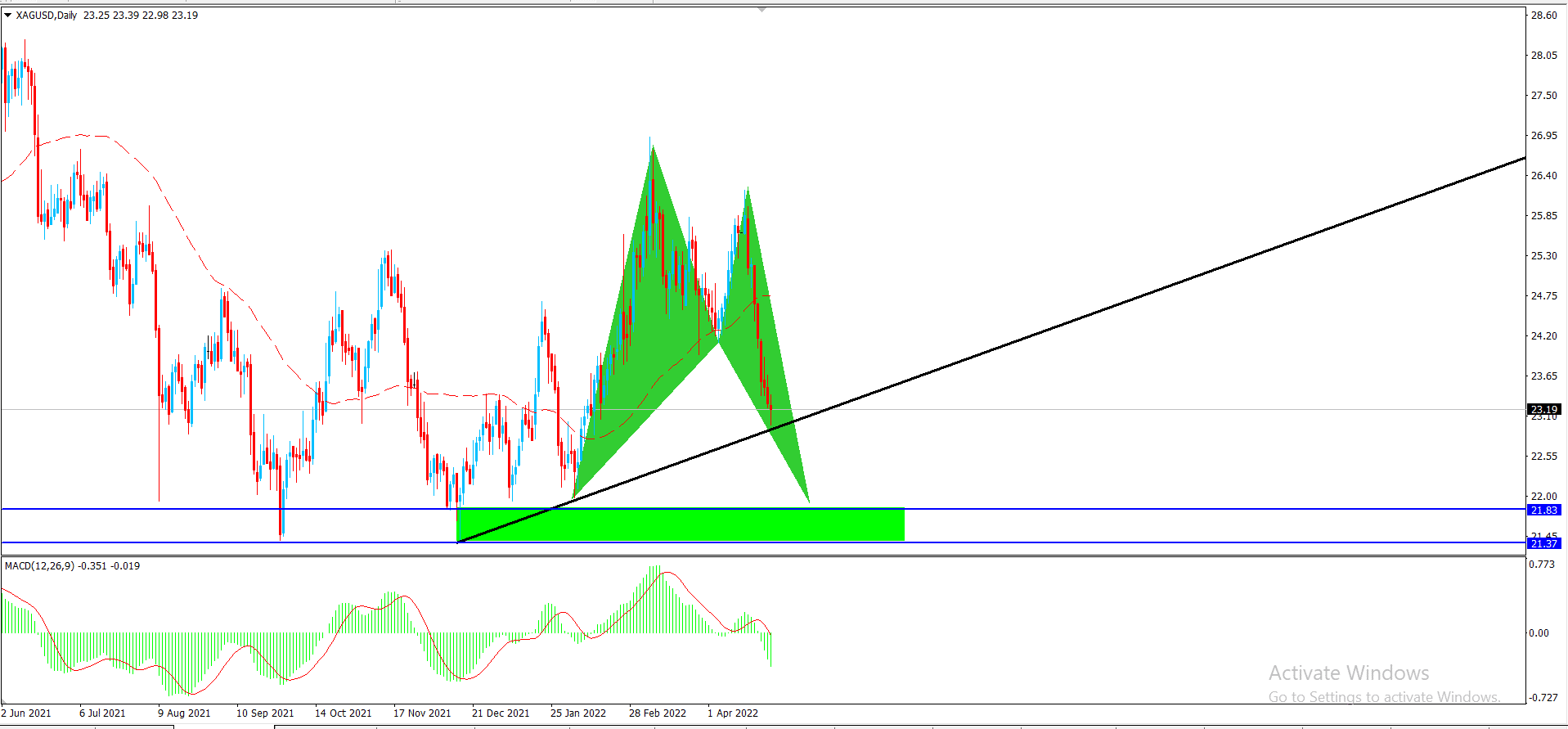 استمرار السيناريو البيعى على شارت الفضه ونلاحظ من جديد يجري سعر الفضة محاولات لكسر مستوى 23.15 ويجد دعم قوي هناك بانتظار الحصول على حافز سلبي يساهم بدفع السعر لتأكيد كسر هذا المستوى