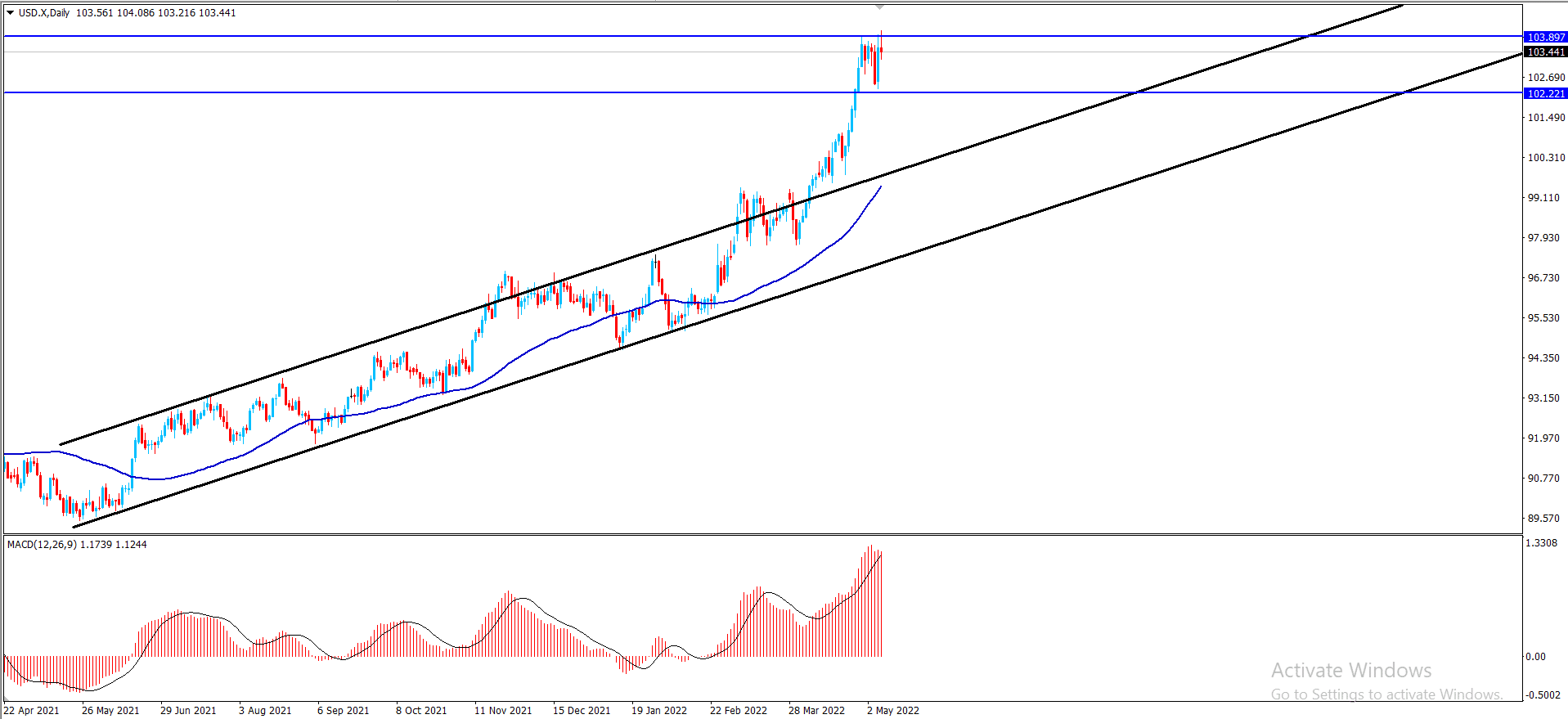 مزيد من التداول الايجابى المتكون معنا الان على شارت اليومى ومنها أنهى سعر المؤشر الارتداد التصحيحي الهابط بتقديمه لإغلاق إيجابي فوق مستوى هام عند سعر 102.00