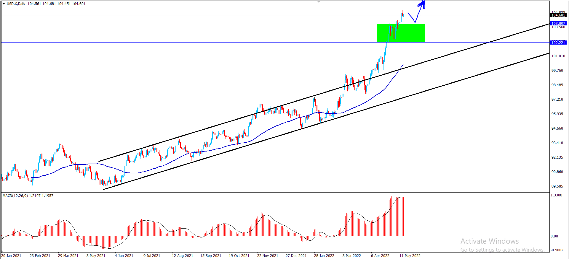 مازالت نظرتنا قائمه ومستمره على الشارت المرفق اعلا ولا تغيير على مسار سعر المؤشر الصاعد بتمركزه المتكرر فوق مستوى المقاومه الهام عند سعر 103.70 ليزيد معنا الان ذلك من فرص استئنافه قريبا للهجوم الصاعد لننتظر ملامسته قريبا لمستوى 105.20