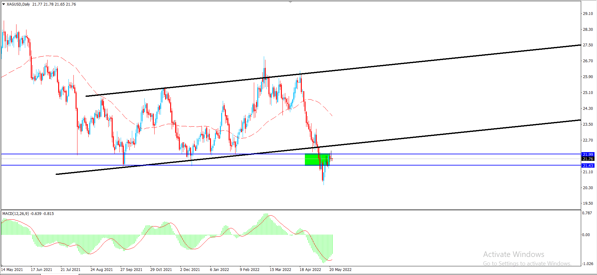 مازال السيناريو مستقر الان اسفل القناه السعريه المكسوره على شارت الفضه ونلاحظ الان يواجه سعر الفضة ضغط سلبي لحظي ليختبر الدعم المحوري 21.70 ويحافظ على استقراره الان فوقه
