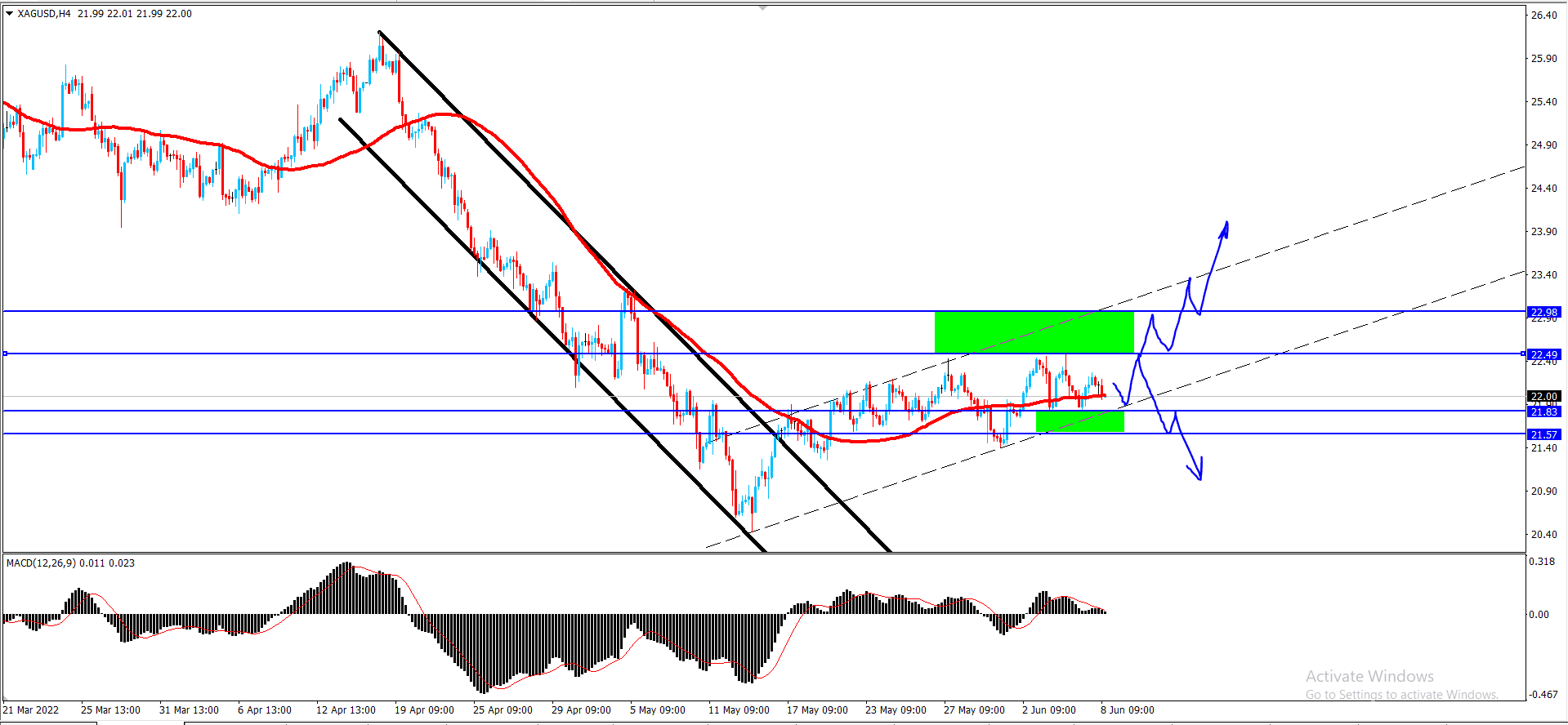 وطالما أن السعر فوق هذا المستوى فإن توقعاتنا للاتجاه الصاعد ستبقى قائمه ومتوقعه معنا داخل نموذج القناه السعريه الصاعده الان التي تظهر بالصورة مع التذكير بأن هدفنا الرئيسي التالي يتواجد عند 22.67.