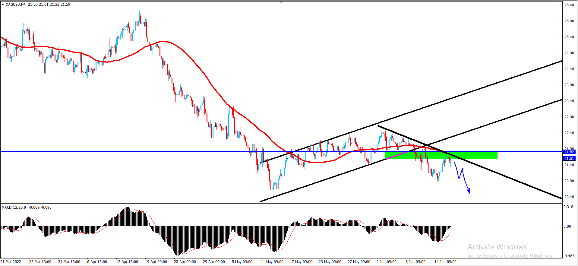 علما بانه طالما أن السعر دون 21.65 فإن توقعاتنا للاتجاه الهابط ستبقى قائمة لهذا اليوم تدعمه سلبية مؤشر الماكد الحالية مع التذكير بأننا بانتظار زيارة مستويات 21.00 ثم 20.50 كأهداف رئيسية تالية.
