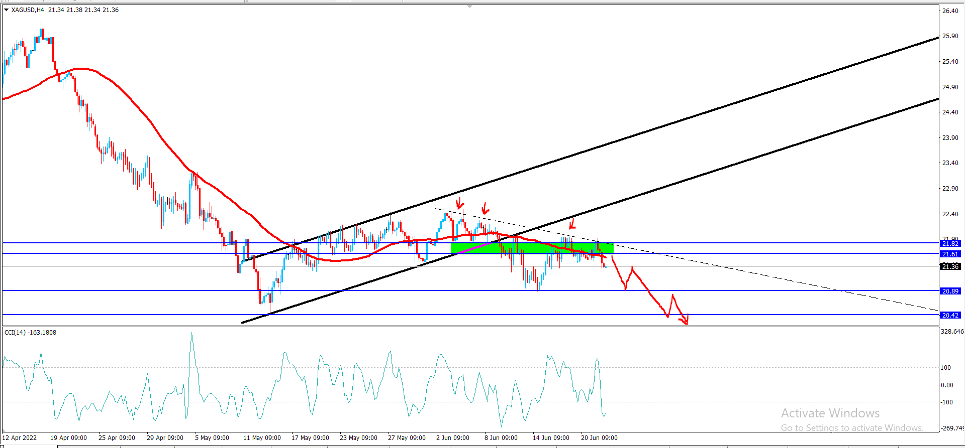 تحركت الاسعار بميل هابط كما نوهنا امس على شارت الفضه ومنها افتتح سعر الفضة تداولات اليوم بسلبية ملحوظة ليكسر مستوى 21.45 ويستقر اسفله الان ،