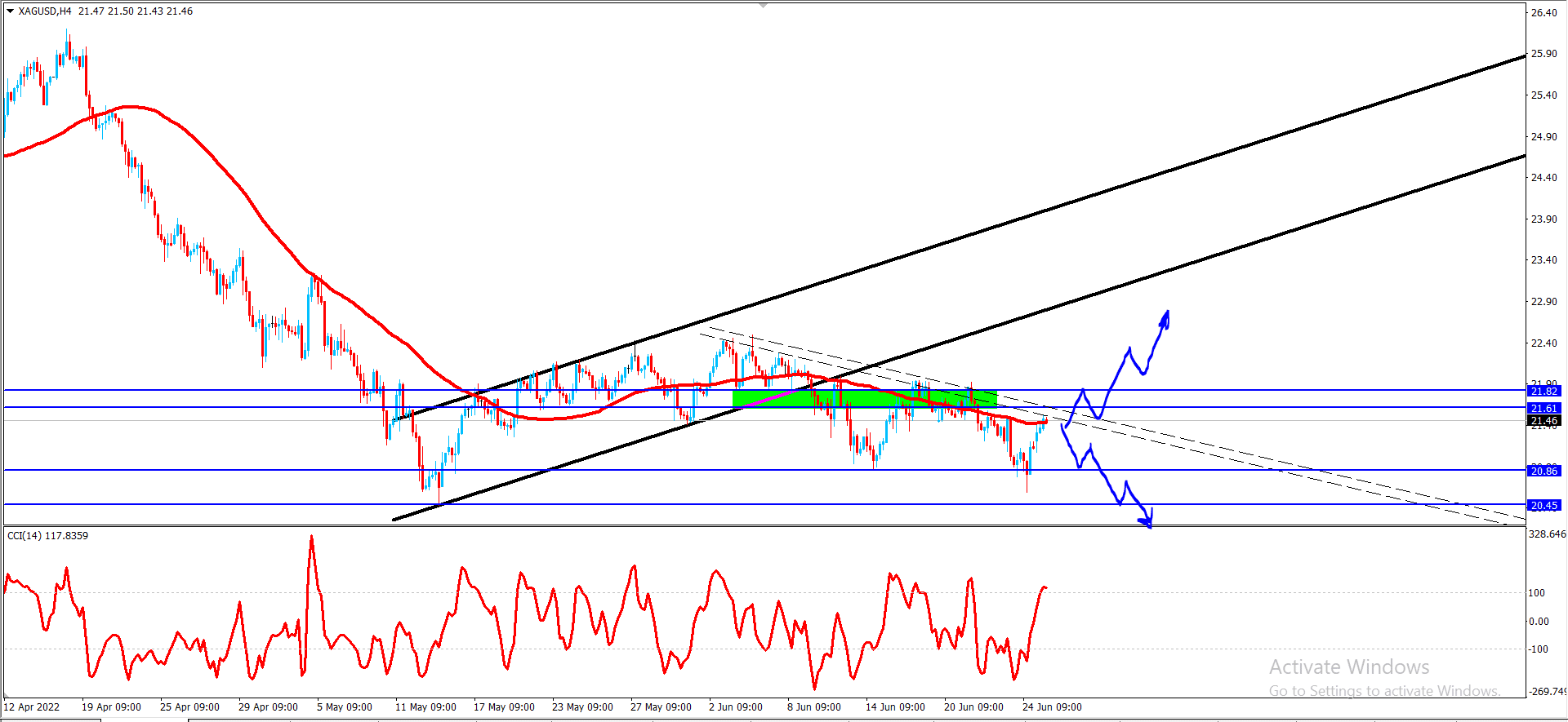 ترجع الاسعار نحو الصعود بعد وصولها الى مستوى الدعم اليومى عند سعر 20.85 وكما نلاحظ الان يظهر سعر الفضة تداولات إيجابية إضافية ليتجاوز المتوسط المتحرك 50،