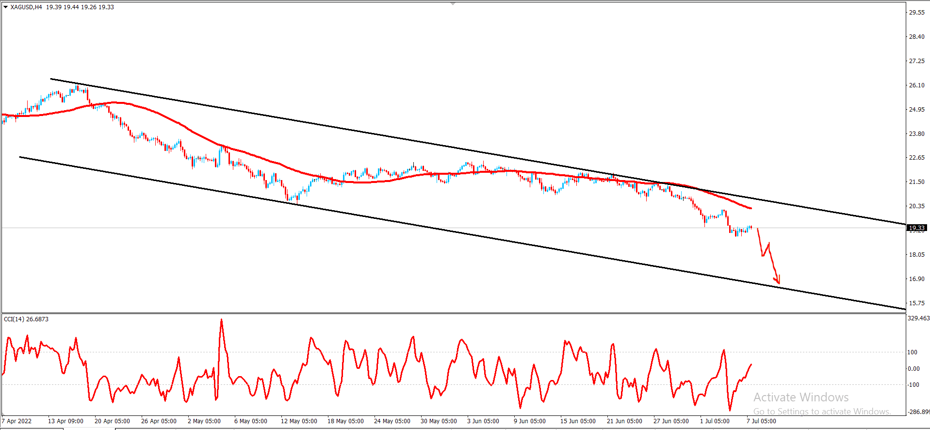 والذي يصل هدفه التالي إلى مناطق 18.60 مع الإشارة إلى أن المتوسط المتحرك 50 يستمر بدعم الموجة الهابطة المقترحة والتي ستبقى قائمة ما لم يندفع السعر لاختراق مستوى 19.60 والثبات فوقه.
