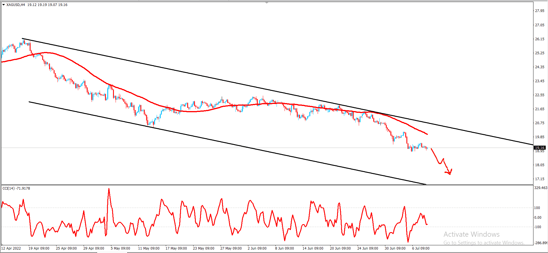 مازالت نظرتنا مستمر نحو الهبوط على شارت الفضه رغم المحاولات الايجابيه المتكونه معنا مؤخرا ونلاحظ الان يبدأ سعر الفضة بمهاجمة مستوى 19.15 ويحاول تأكيد الكسر،