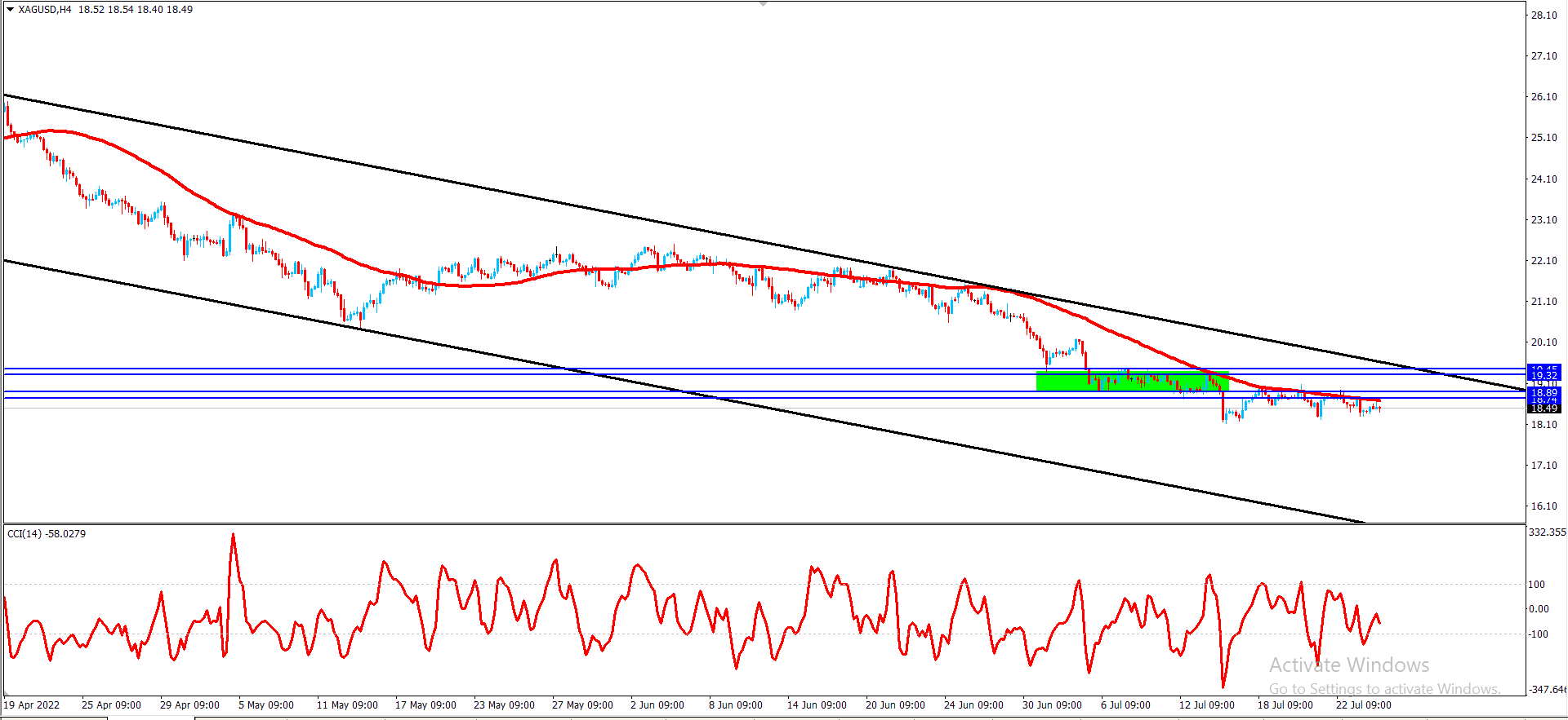 من خلال التداول المتكون معنا الان كما نلاحظ يظهر سعر الفضة ميلا صاعدا بشكل عرضى اسفل مستوى المقاومه الان ليختبر مستوى 18.60