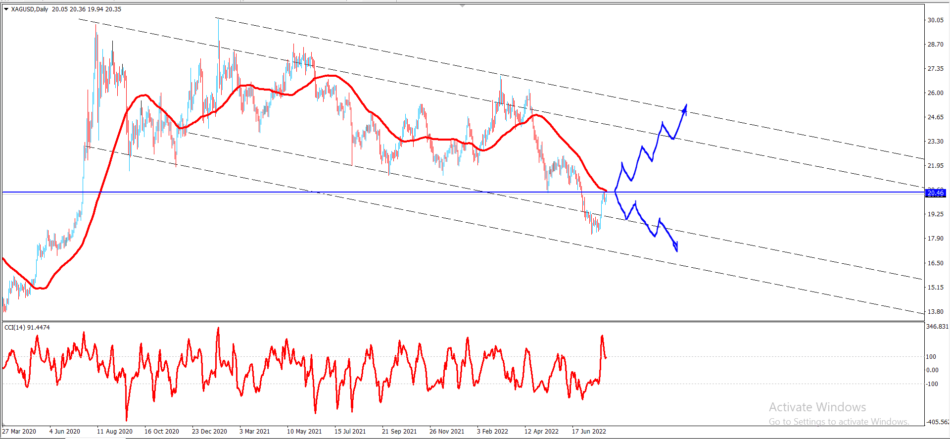 رغم التداولات الوراده مسبقا فى تقريرنا الاخير كما نلاحظ يستمر سعر الفضة بالتذبذب حول مستوى 20.00 ويحصل على دعم إيجابي مستمر من المتوسط المتحرك 50،